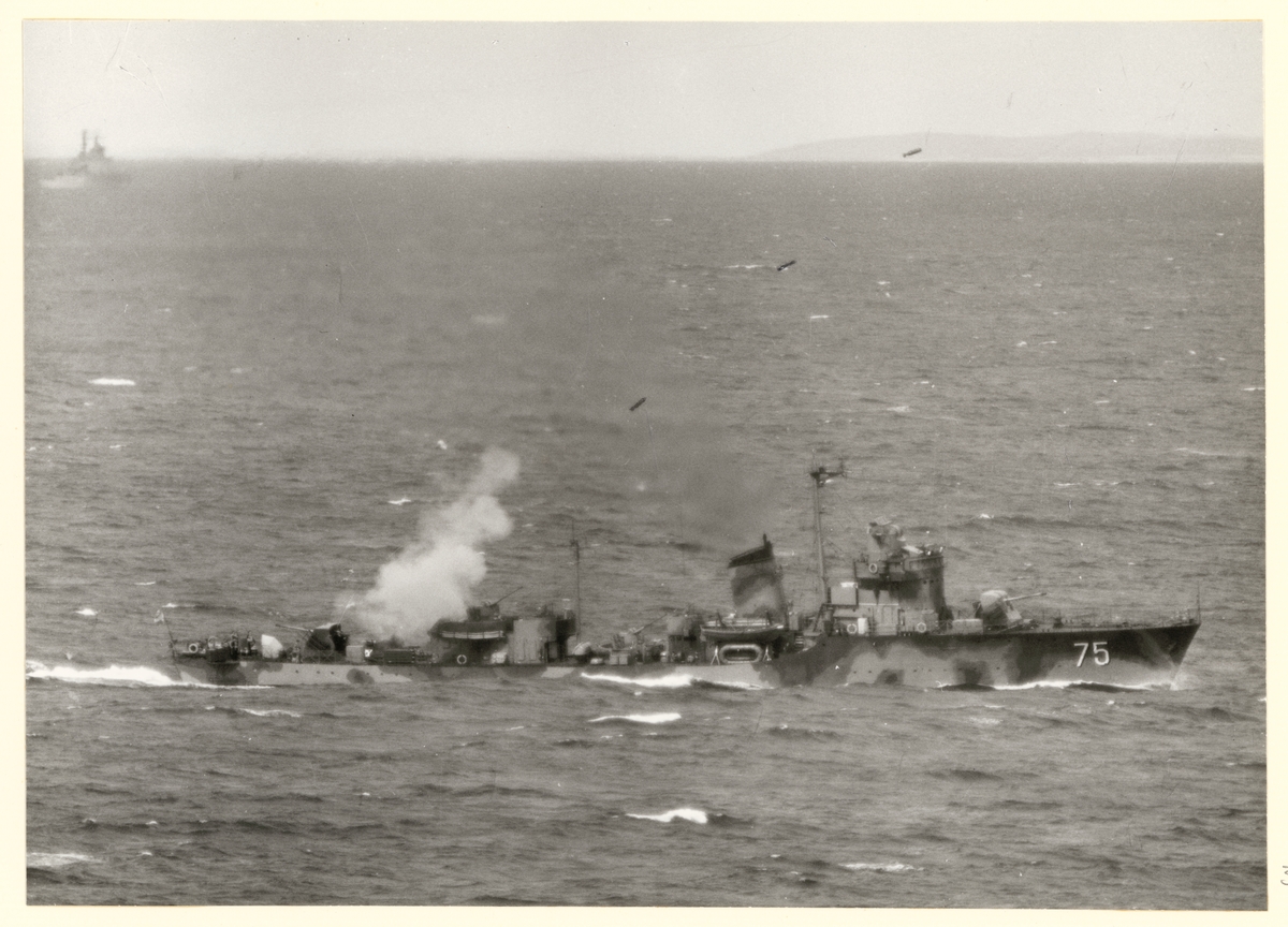 Titel: Bilden visar skjutning med robotar från fregatten Munin under operation Kullen.