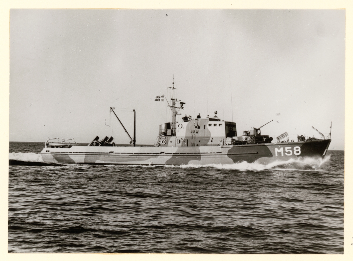 Titel: Bilden visar minsveparen M 58 Spårö till havs från styrbordssidan.