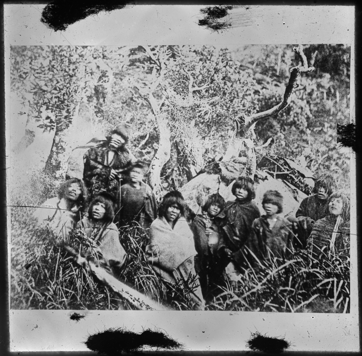 Bilden visar en grupp urinvånare från Patagonien i urskogen.