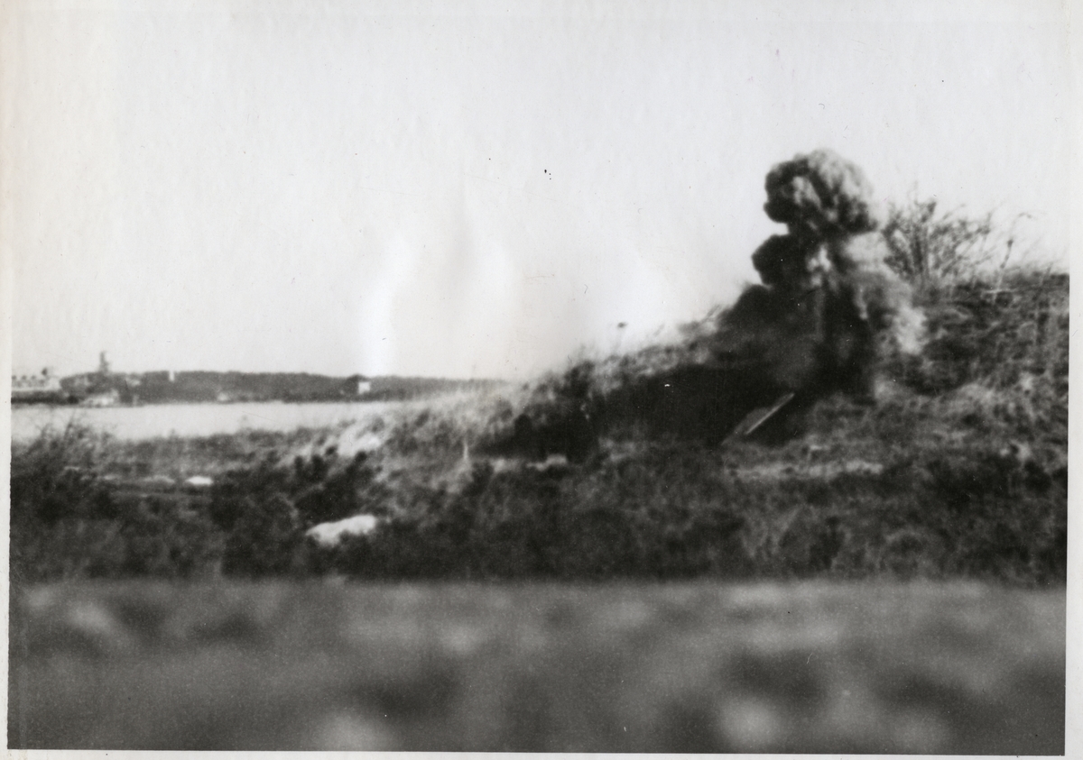 Titel: Rökutveckling efter explosion på gräskulle.