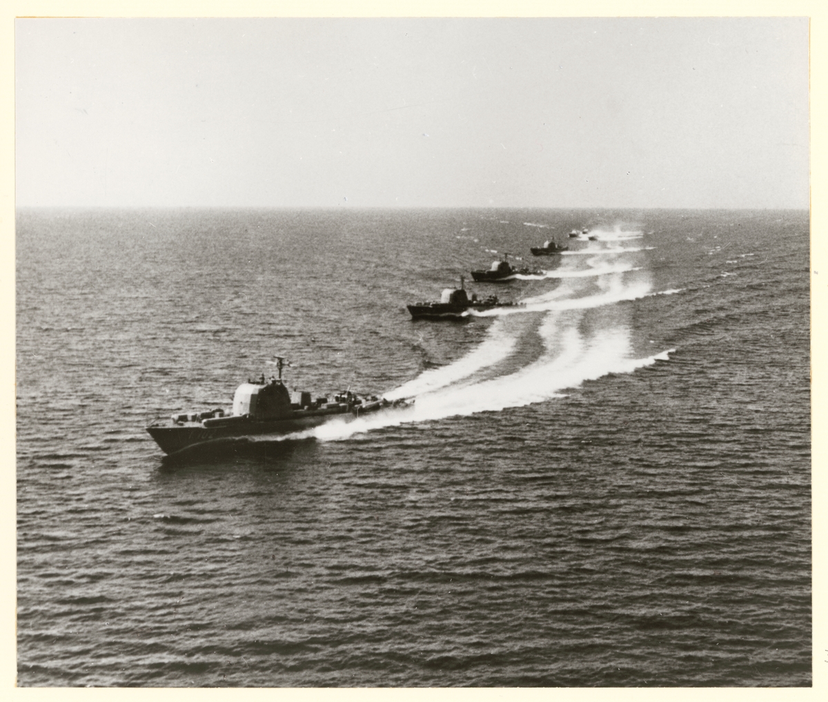Titel: Bilden visar en förband torpedbåtar till havs under operation Kullen.