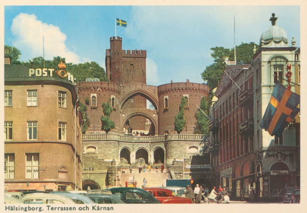 Vykort i färg förställande terrasstrapporrna och Kärnan.