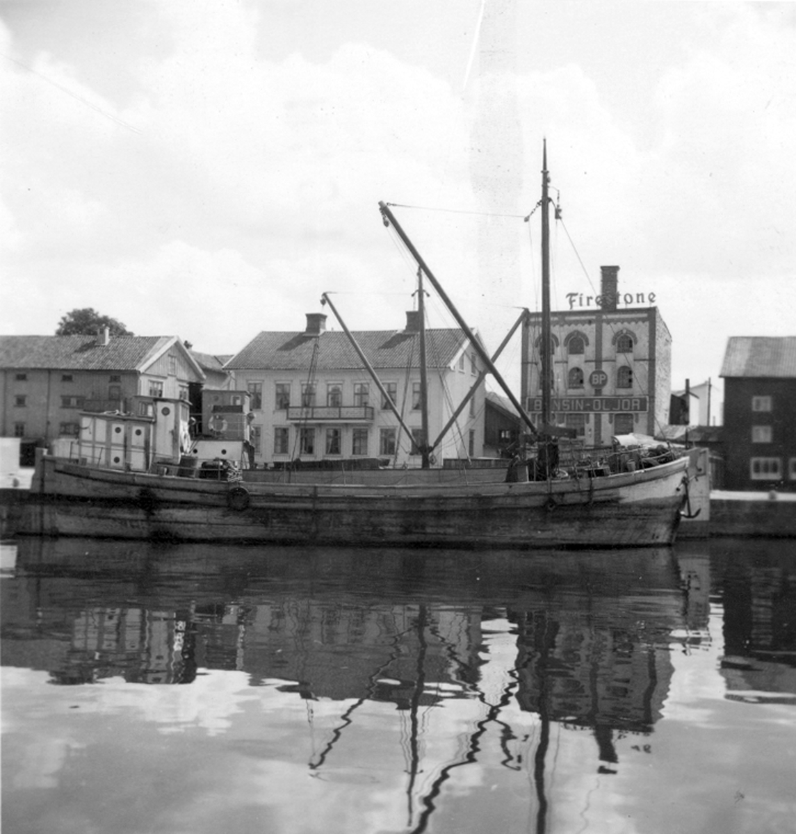 Älvbåten Hagen i Vänersborgs hamn. Byggd på Torskogs varv 1875 av ek och fur på järnspant. förbyggd på Södra Garns varv 1888. Åter förbyggd 1903 och 1937. Hemmahörande i Göteborg 1894-1912, i Torps tegelbruk 1912-1917, i Vänersborg 1917-1954. 10 hkrs motor insatt 1923. 18 hkrs motor insatt 1927. Foto i juli 1954
