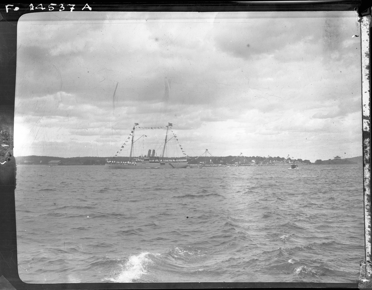Halba Stockholmseskadern liggande på Lilla Värtan den 9 juli 1905 i väntan på Drotts ankomst