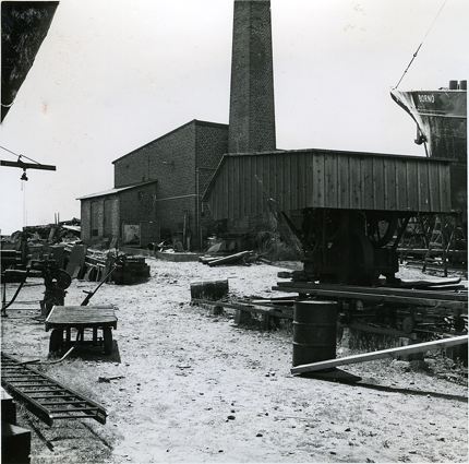 Holms skeppsvarv. Varvsgården med exenterhammaren sett mot SV. I bakgrunden det kombinerade pann- och vinschhuset. Skåne, Malmöhus län, Råå.