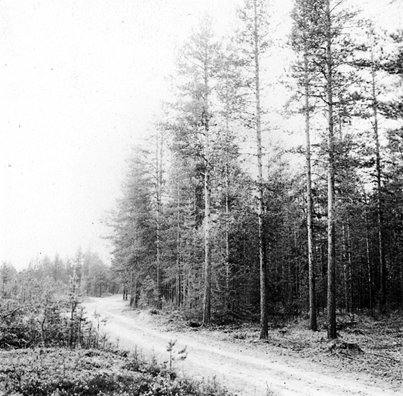 Neg nr 17. Költall, den tredje tallen fr höger i förgrunden. Tallen växer på hedland. Foto 6.10 (1962).