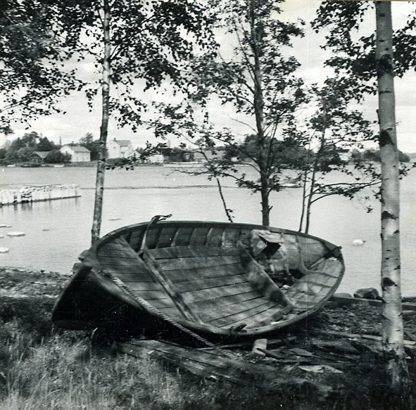 Sigvard Erikssons skötbåt, byggd omkring 1900. Interiötr från styrbords bog och från styrbords låring.