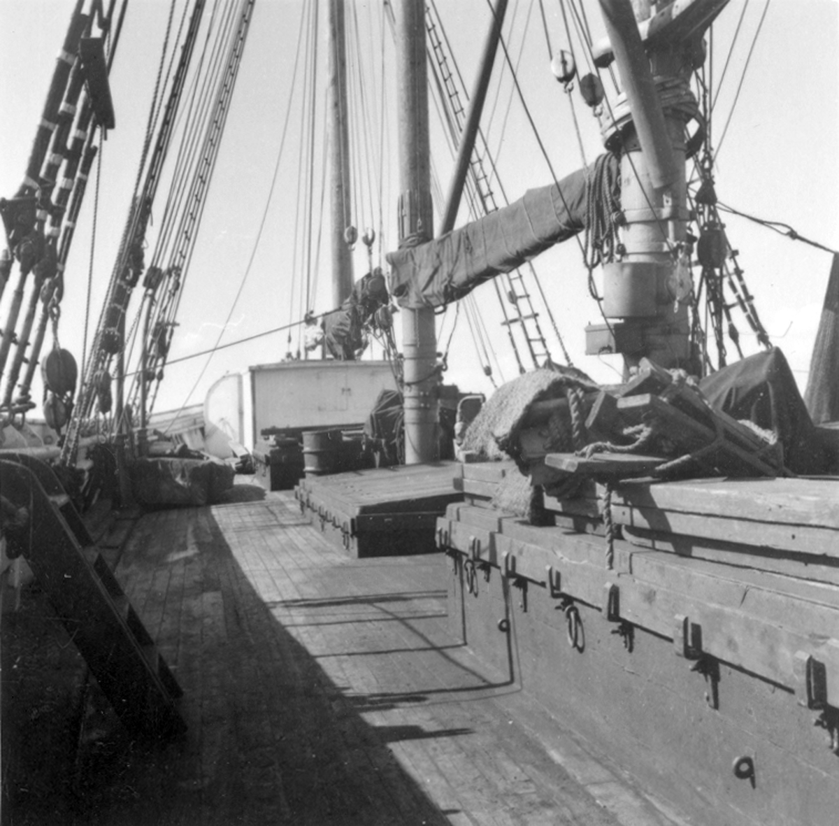 Motorskonaren Lisa av Bergkvara. Styrbords fördäck sett från halvdäck.