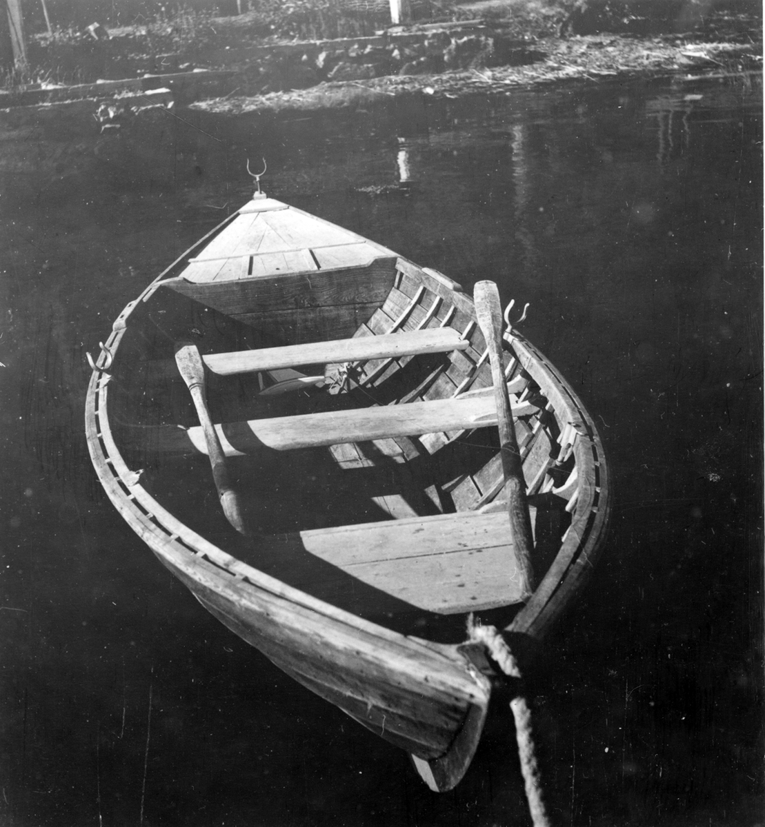 Titel: Uppland, Stockholms län, Frötuna skeppslag, Länna socken, Högmarsö. Roddsump, snipa med fisksump i aktern.