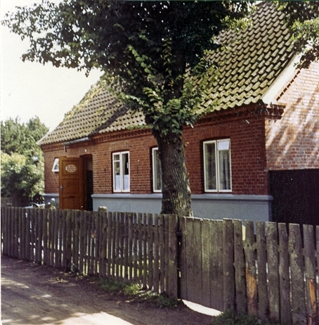 Boningshusets nordfasad åt gatan sedd från nordväst. Christian Madsens båtbyggeri. Foto N(ils) Nilsson aug (19)64. Danmark, Själland, Lynaes.