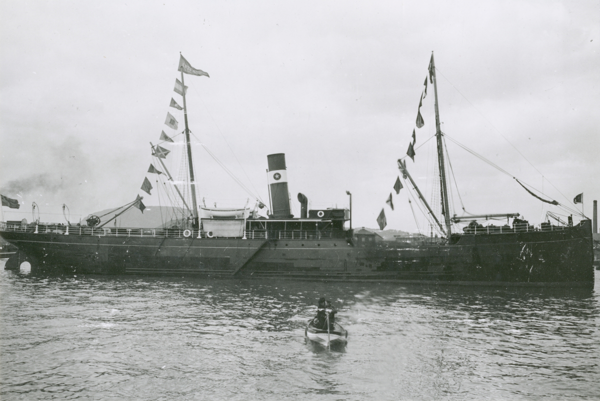 Last- och passagerarångfartyget ARTEMIS, tidigare SEA GULL, byggt år 1893 i Dumbarton. Kortet taget före år 1909. Datumet kan fastställas pga rederiets namnbyte från Södra Sverige till Svea den 12/2 år 1909.