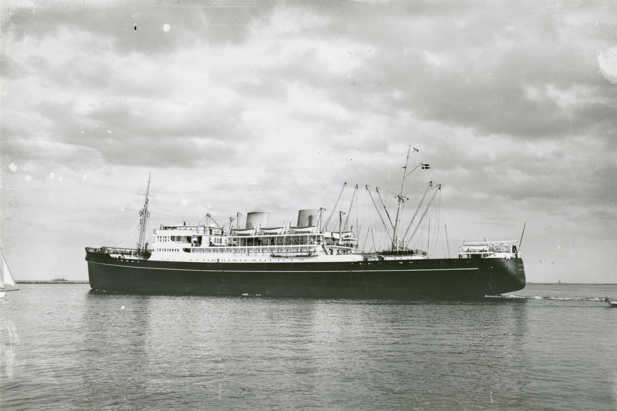 Foto i svartvitt visande passagerarmotorfartyg CANADA av Köpenhamn i Köpenhamn.