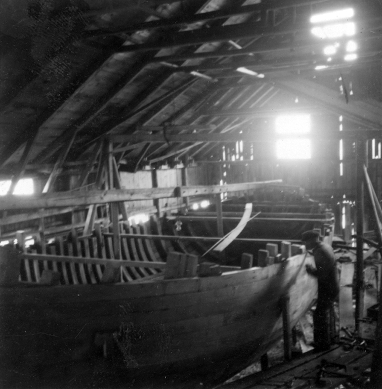Titel: Småland, Kalmar län, Södra Möre härad, Våxtorps socken, Ekenäs. Lunds varv. Trålare för Ryssland under byggnad.