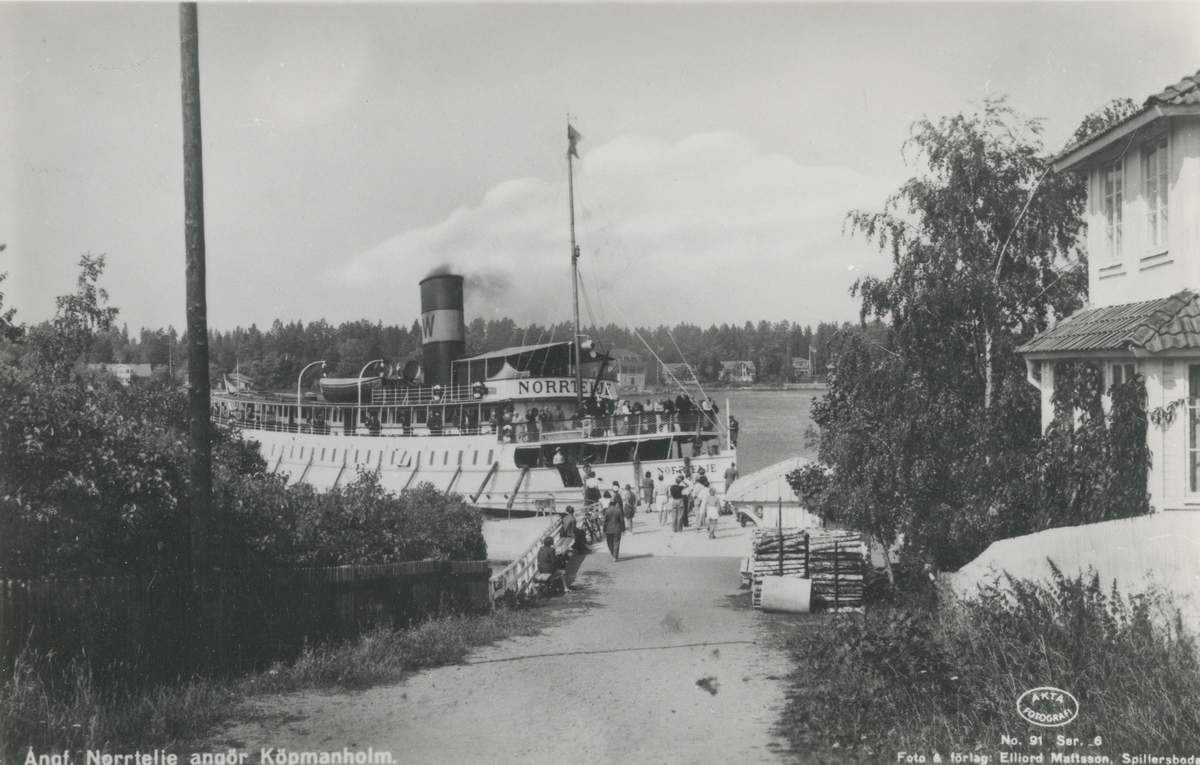 Ångfartyget Norrtelje angör Köpmanholms brygga.