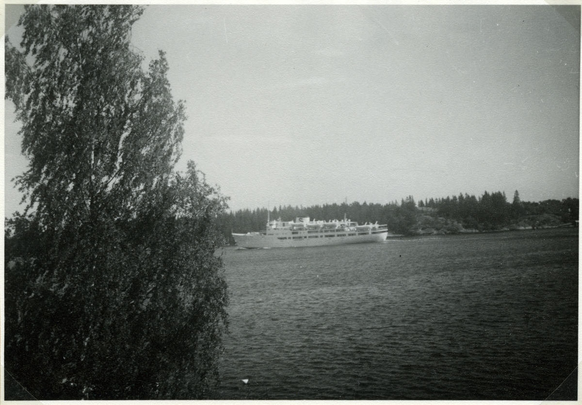 Fartyget passerar Furusund, i bakgrunden Yxlan.