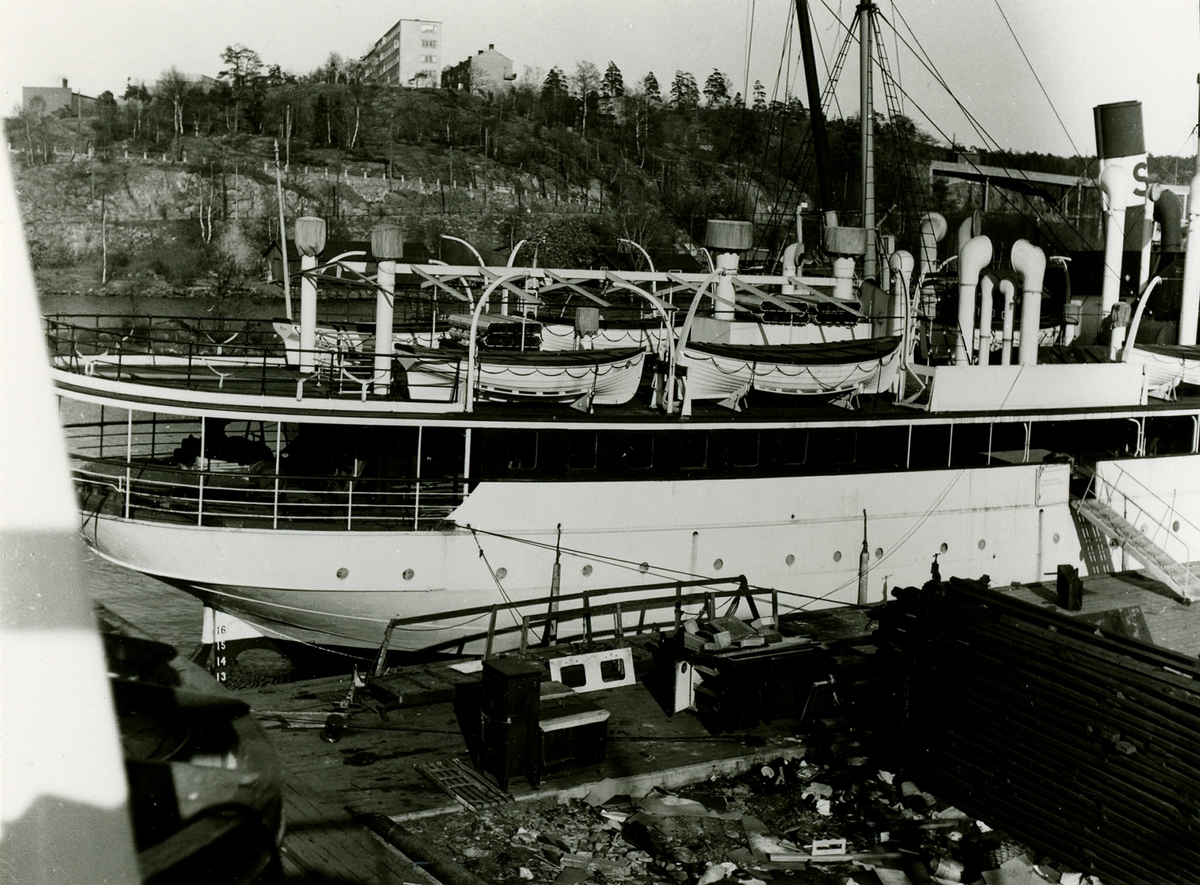 Passagerarångfartyget ÖRNEN av Stockholm liggande vid varvet 1949.