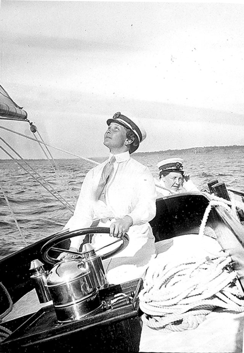 Till rors troligen fotografens hustru, Linnéa Bovin, i skepparmössa.