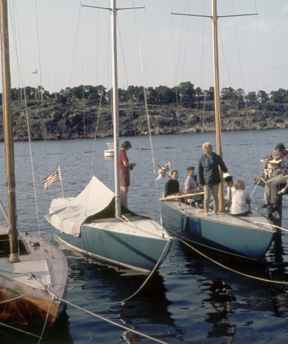 5.5-metersjakterna SABRE och KAN-BEI fotograferade i samband med 1959 års Sandhamnsregatta.