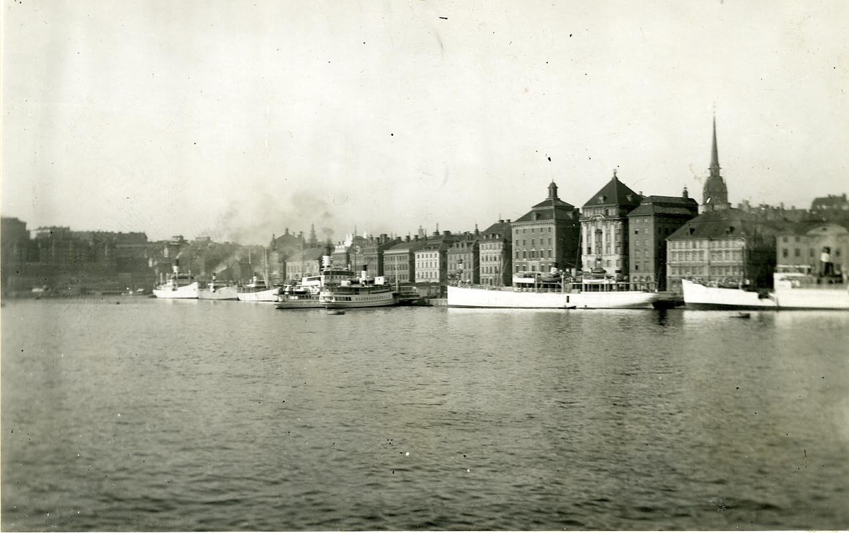 Katarinahissen på Södermalm, del av Skeppsbron samt tyska kyrkans torn.