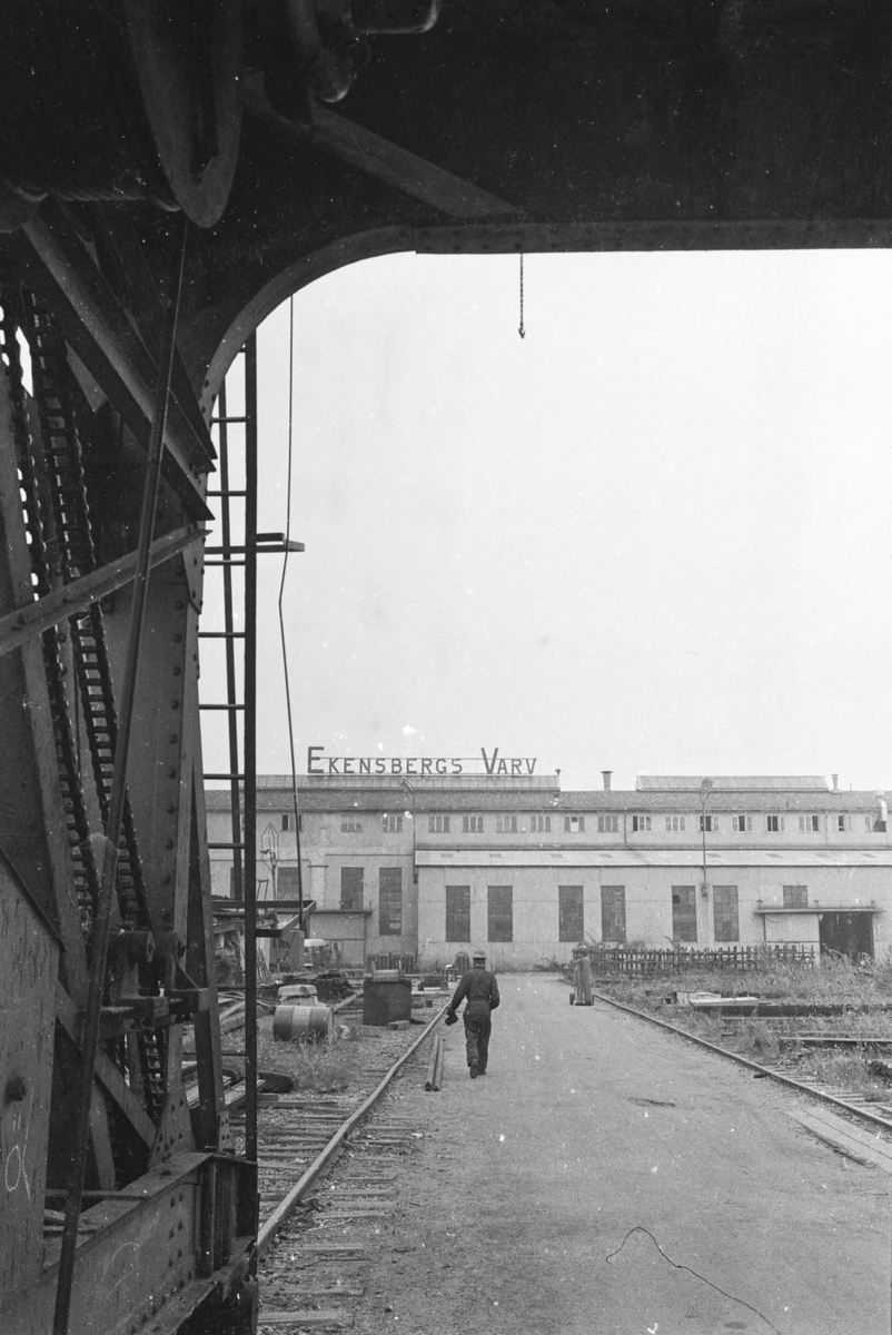 Ekensbergs varv 1970. Fundament till varvskran, i bakgrunden stora plåthallen.