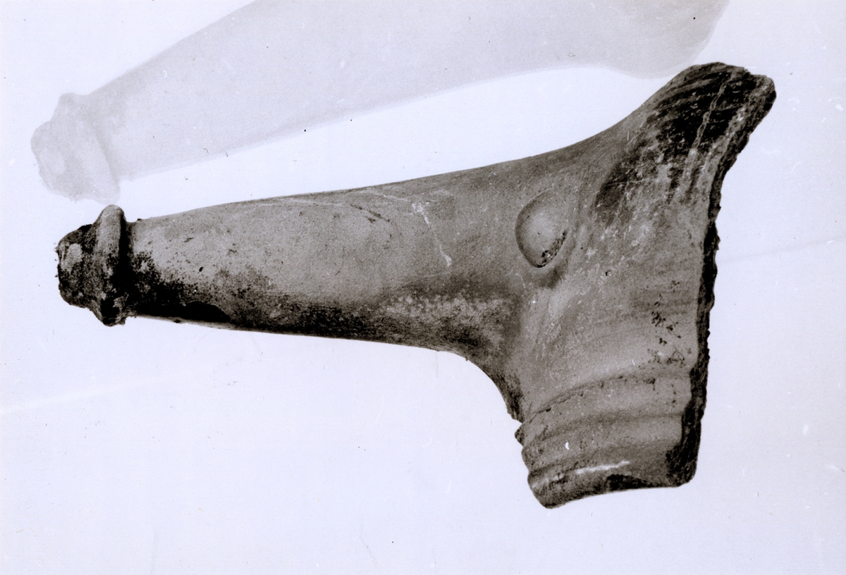 Handtag med sidofragment till trefatsgryta. Sjöfynd från Djurhamn.