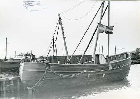 Holms skeppsvarv. Fiskebåten MPT 1028, för Leningrad, har just blivit sjösatt, 1950.