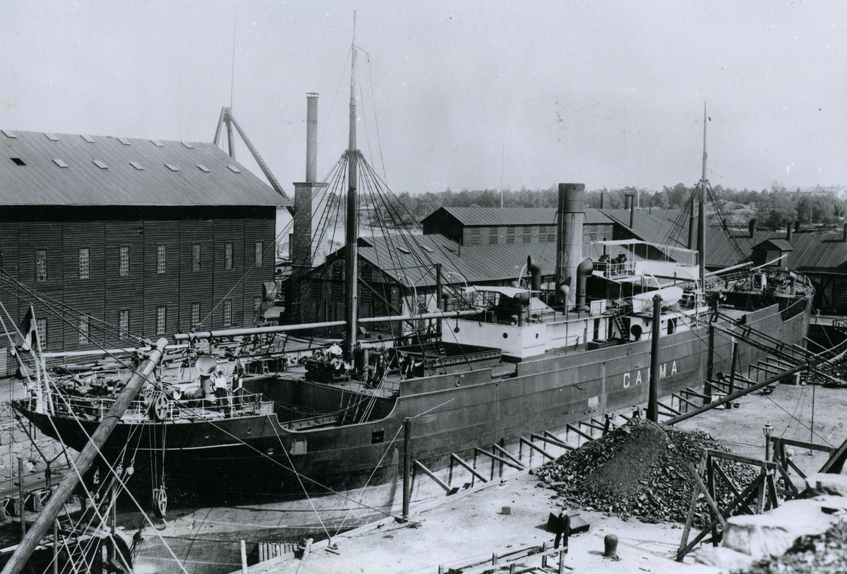 Okänt lastångfartyg i Oskarshamns varvs docka.
