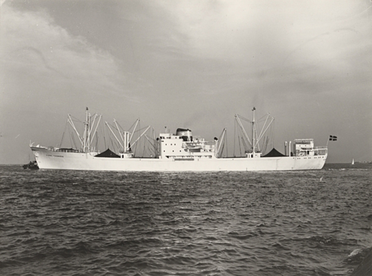 Foto i svartvitt visande lastmotorfartyget "CLARY THORDÉN" i Köpenhamn den 13.2.1955.
