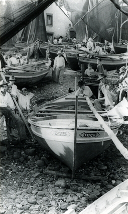 Vasco da Gama og andre fiskebåtar på stranden i Camara de Lobos. Neg saknas. Foto Knut Weibust 1951
