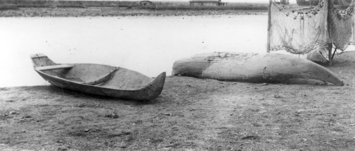 En Votjatisk äsping från distriktet Sarapul. Den har endast ett spant, vilket blott i ena ändan är fäst vid skrovet. Foto i Finlands Nationalmuseums samlingar. Gåva av Institutet för folklivsforskning 1953. tryckt i Folk-Liv 1947