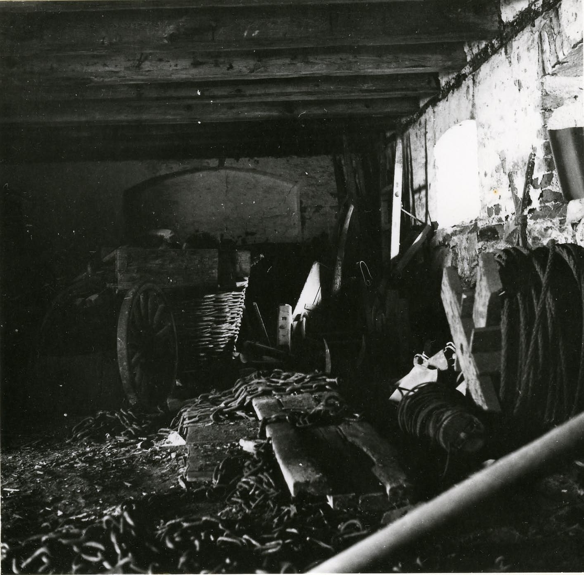 Titel: Kolningsredskap m.m. i bottenvåningen i gamla järnmagasinet, Ängskärs hamn.