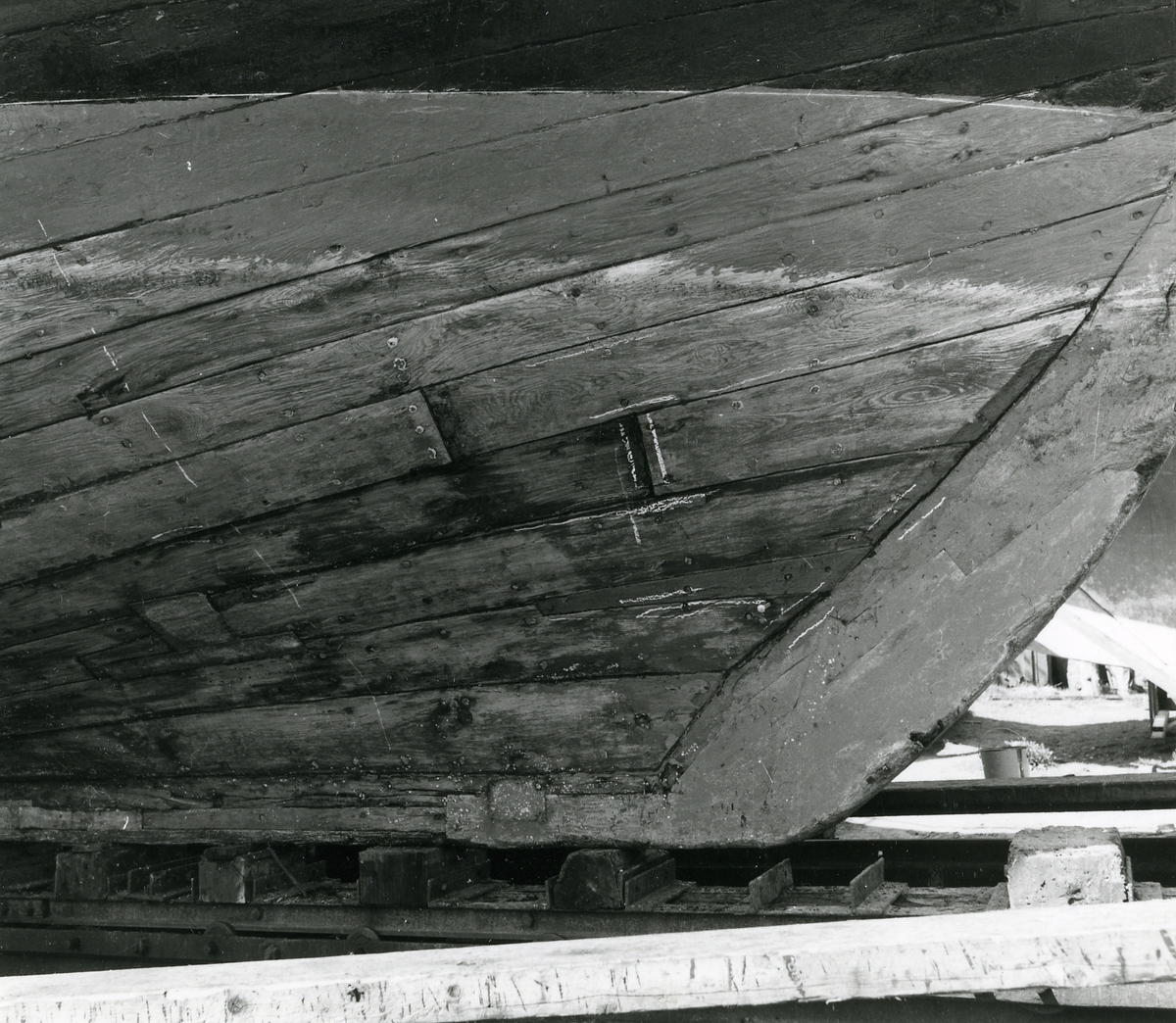 När drevet skall undersökas, omdrevning företas, kopparplåt påläggas, markeras med krita på skrovet.