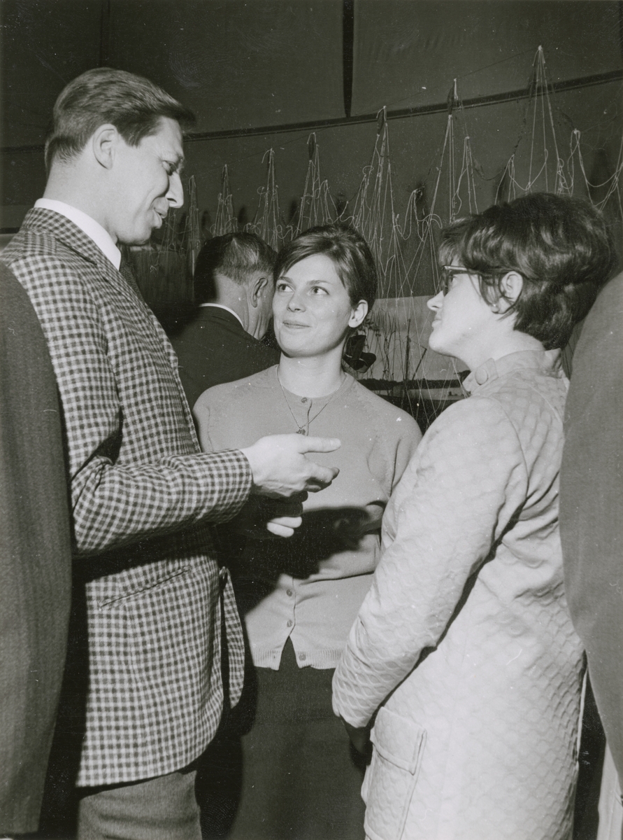 Utställningen "Djurhamn Historisk ankargrund". Intendent Lars-Åke Kvarning, amanuens Margareta Ewert och fru Anna Peyron vid vernissagtillfället.