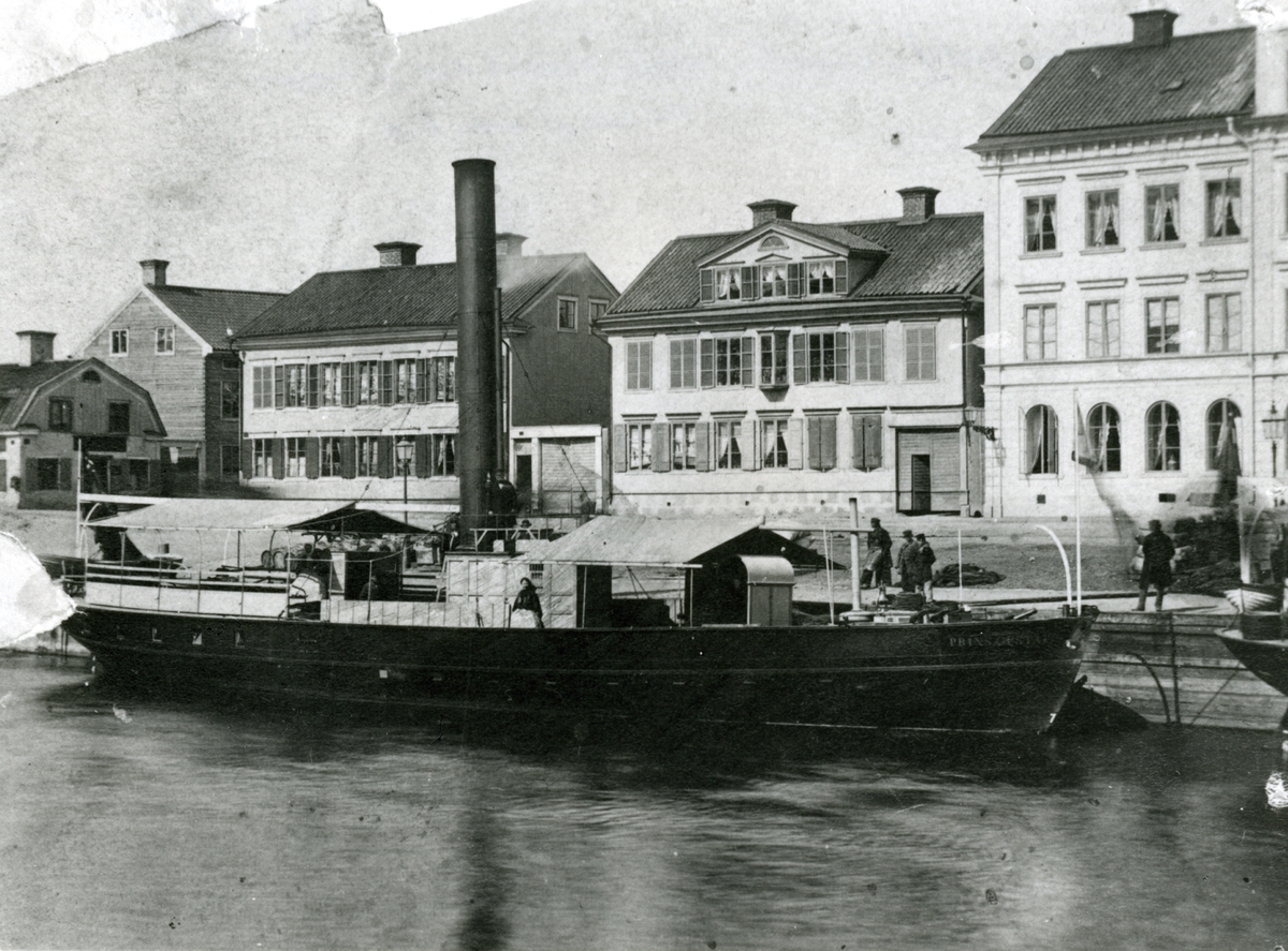 PRINS GUSTAF i Uppsala. Kapten Fredrik Roos på bryggan och fru Roos på nedre däck.
