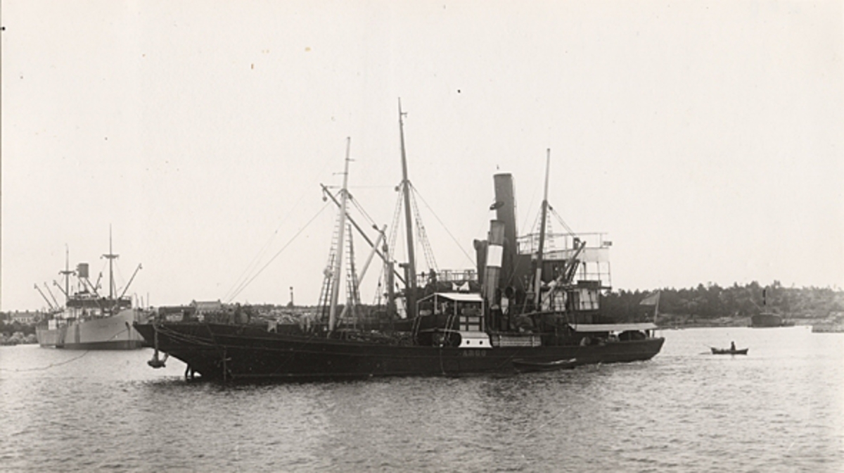 Fotot visar: Bärgningsfartyget ARGO med haverist lastångfartyget INGA. I bakgrunden lastångfartyget LIGURIA.
