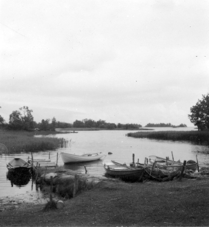 Småland. Kalmar län, Stranda härad, Ålems socken, Pataholm. småbåtar, bryggor och kåsar.