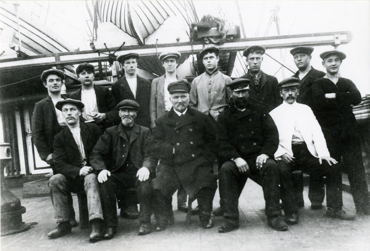 ...3-mast barken "Anton" av Väddös besättning år 1910. kapten M. Mattsson i mitten.