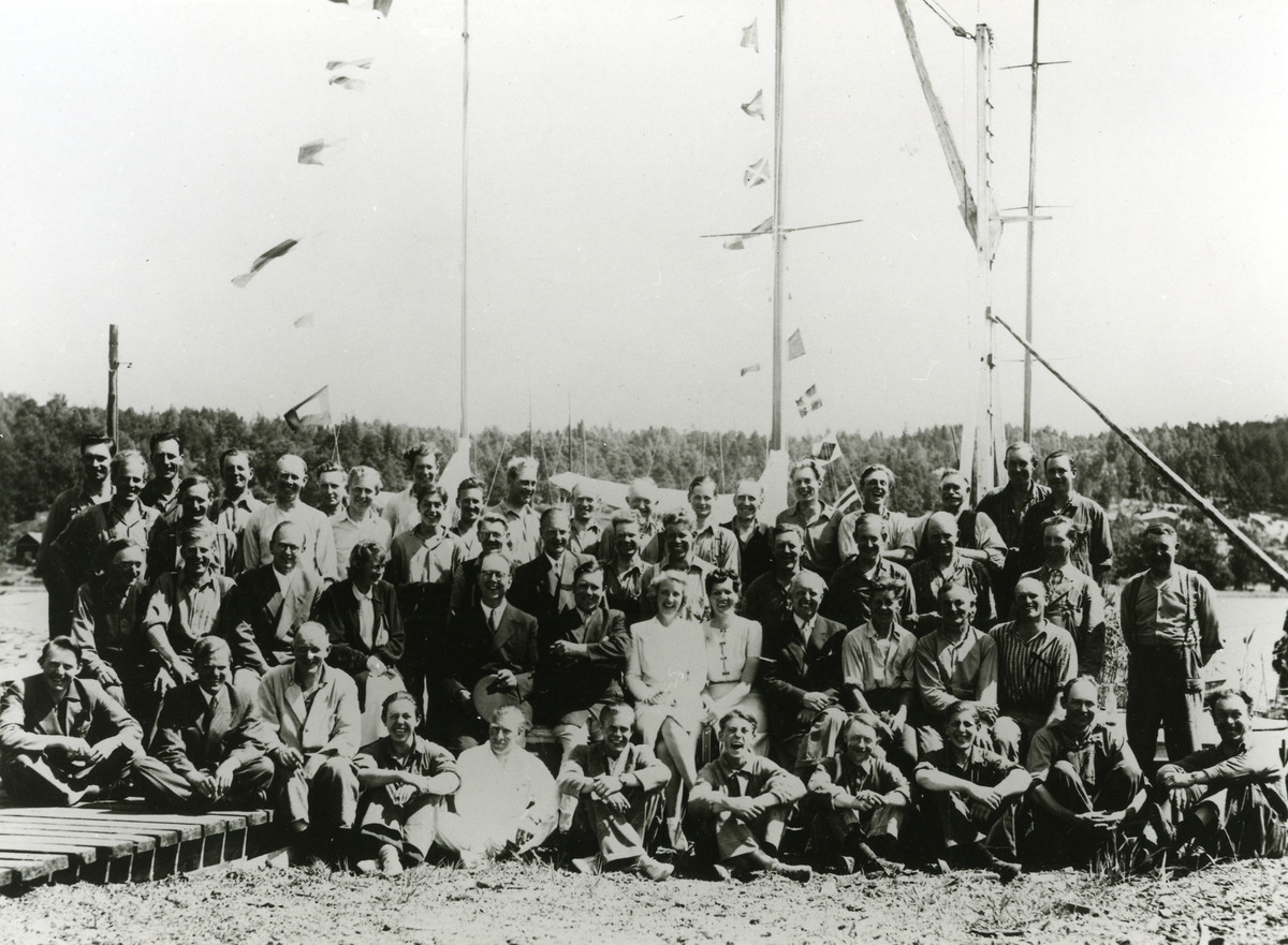 Gruppbild tagen vid sjösättningen av "MARIBELL" i juli 1944.