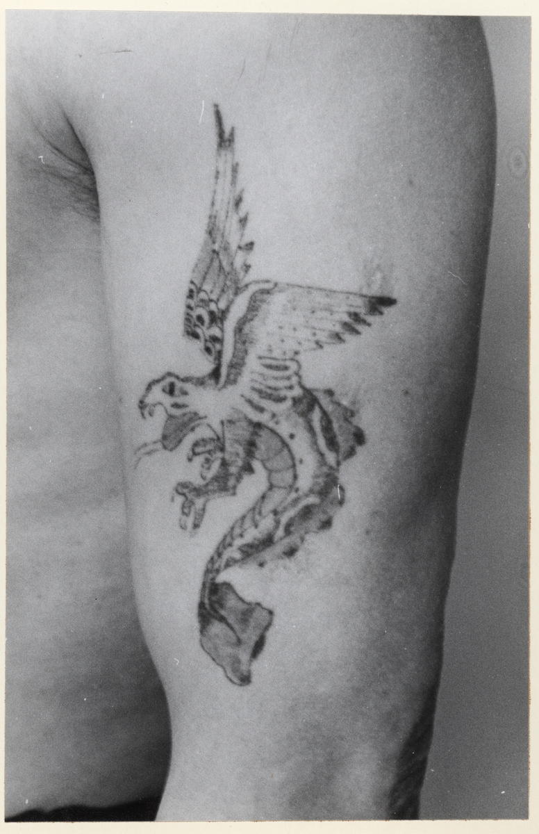 Tatueringarna äro utförda av sjömannen och tatueraren Sven Erik Mårtensson, Stockholm, den första 1942.