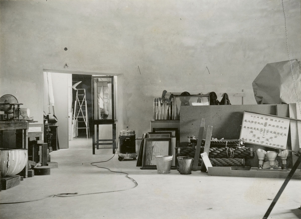 Samlingarna under uppordnade våren 1936. Utställningen i Sjöfartsavdelningen. Nautiska rummet växer fram.