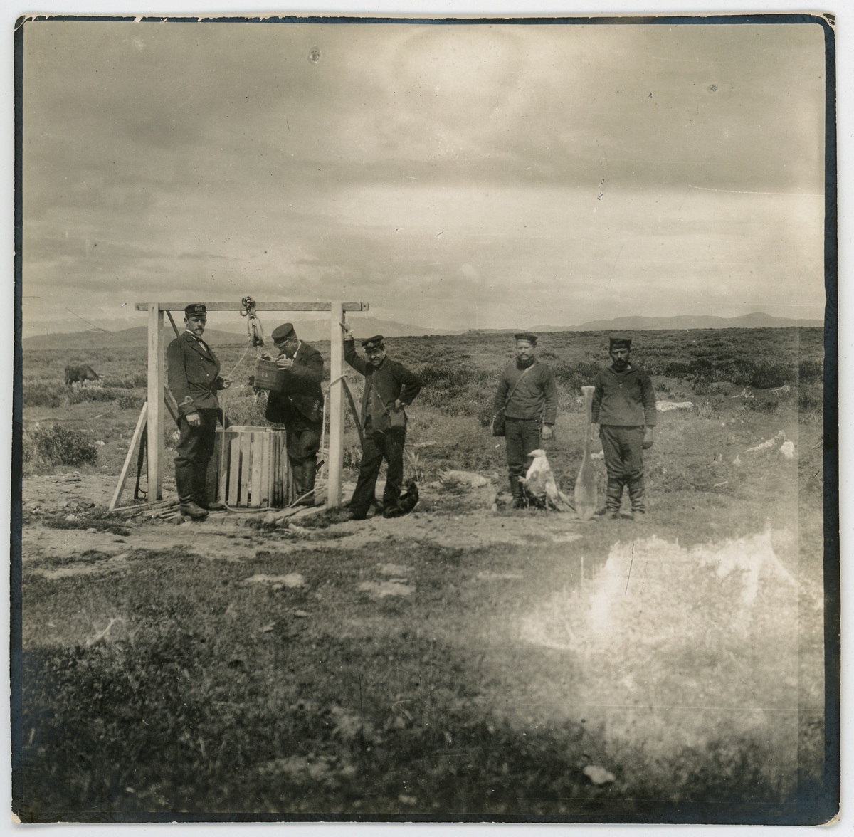 "A la chasse, jagt tur" text på fotots baksida. Ushuaia, mitten av november 1903. Löjtnant Bergendahl och Jacob Torgersruud m.fl.