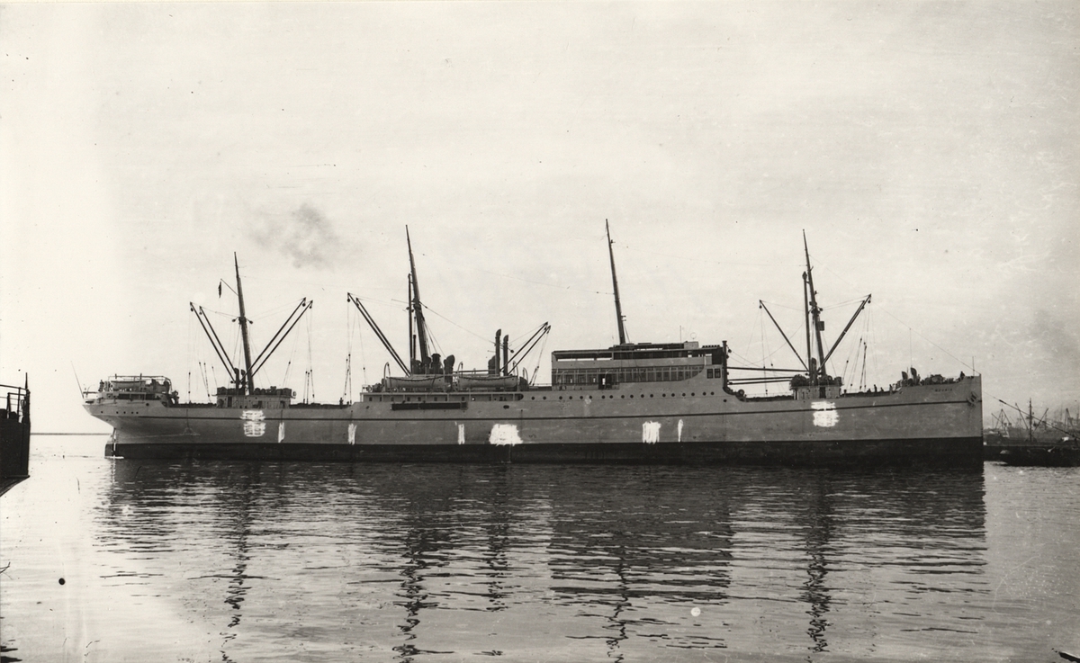 Foto i svartvitt visande last-& passagerarmotorfartyget "MEONIA" av Köpenhamn i Köpenhamn 1939-40.