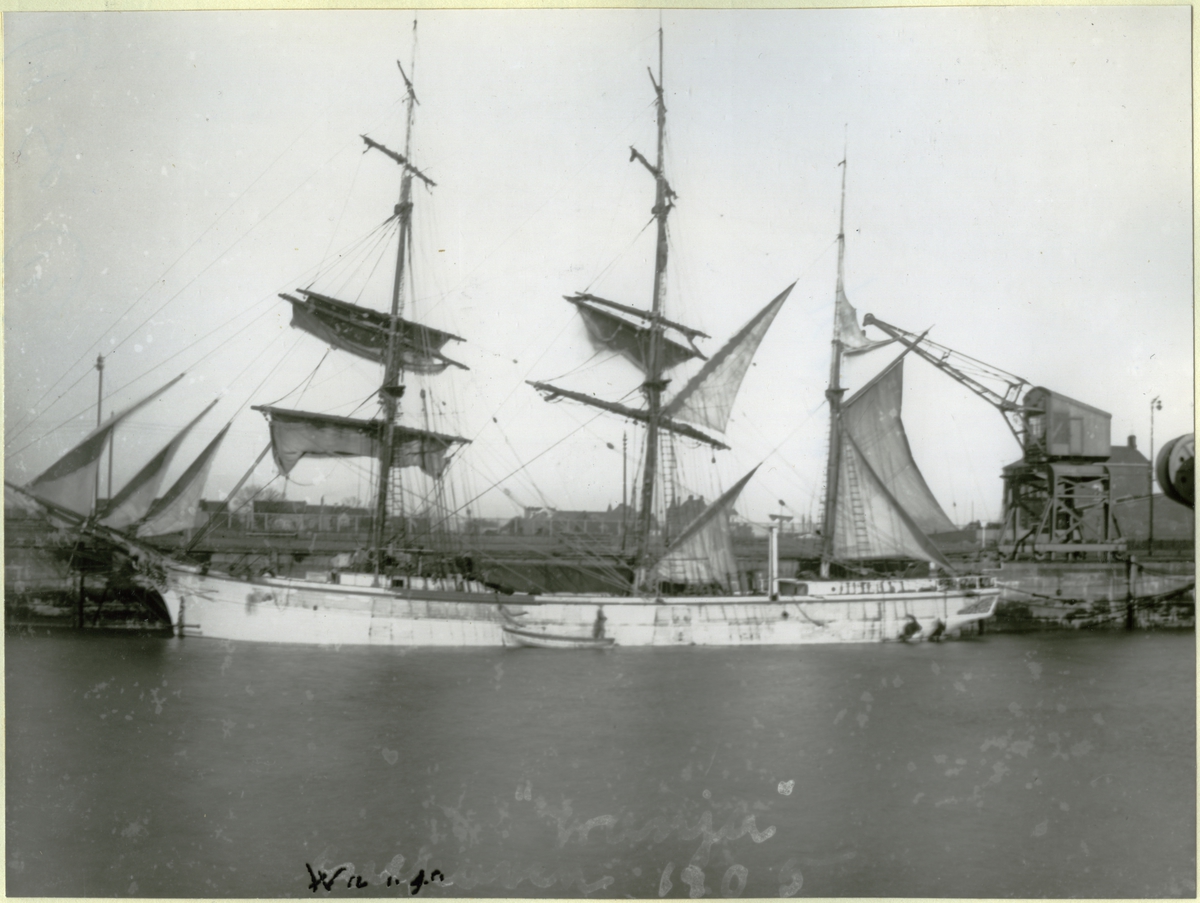 [från fotobeskrivningen:] [---] "Wanja i Hamburgshamn [sic], efter att ha blivit påseglad av ett ångfartyg i Nordsjön 1905." [---]