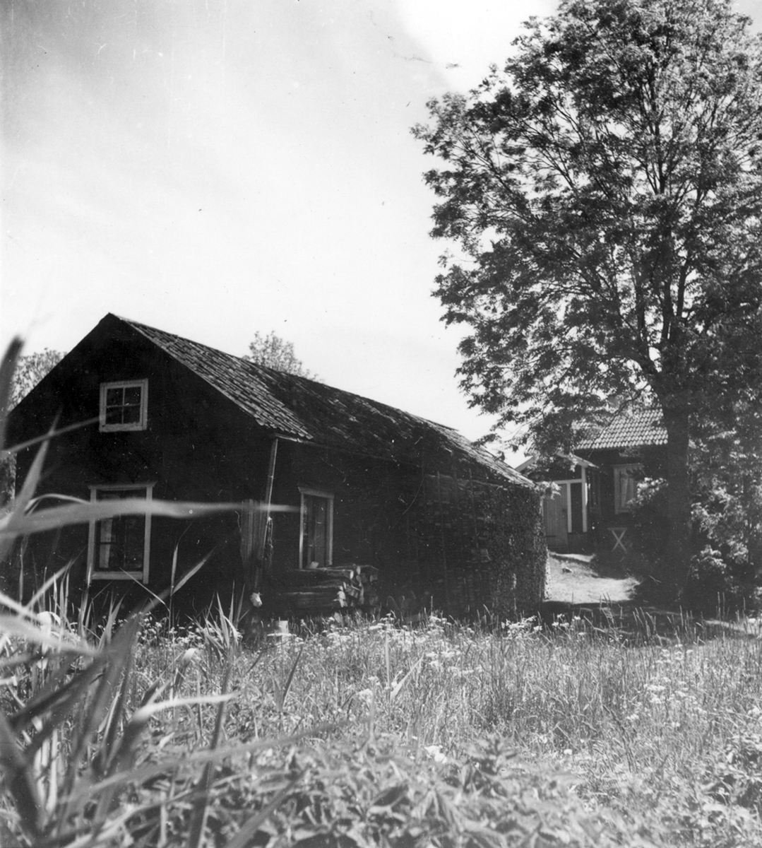 Uppland, Stockholms län, Frötuna skeppslag, Länna socken, Vettershaga. Skeppare Olssons lagård och källarstuga. I lagården har inretts ett sommarrum. Foto i juni 1950.