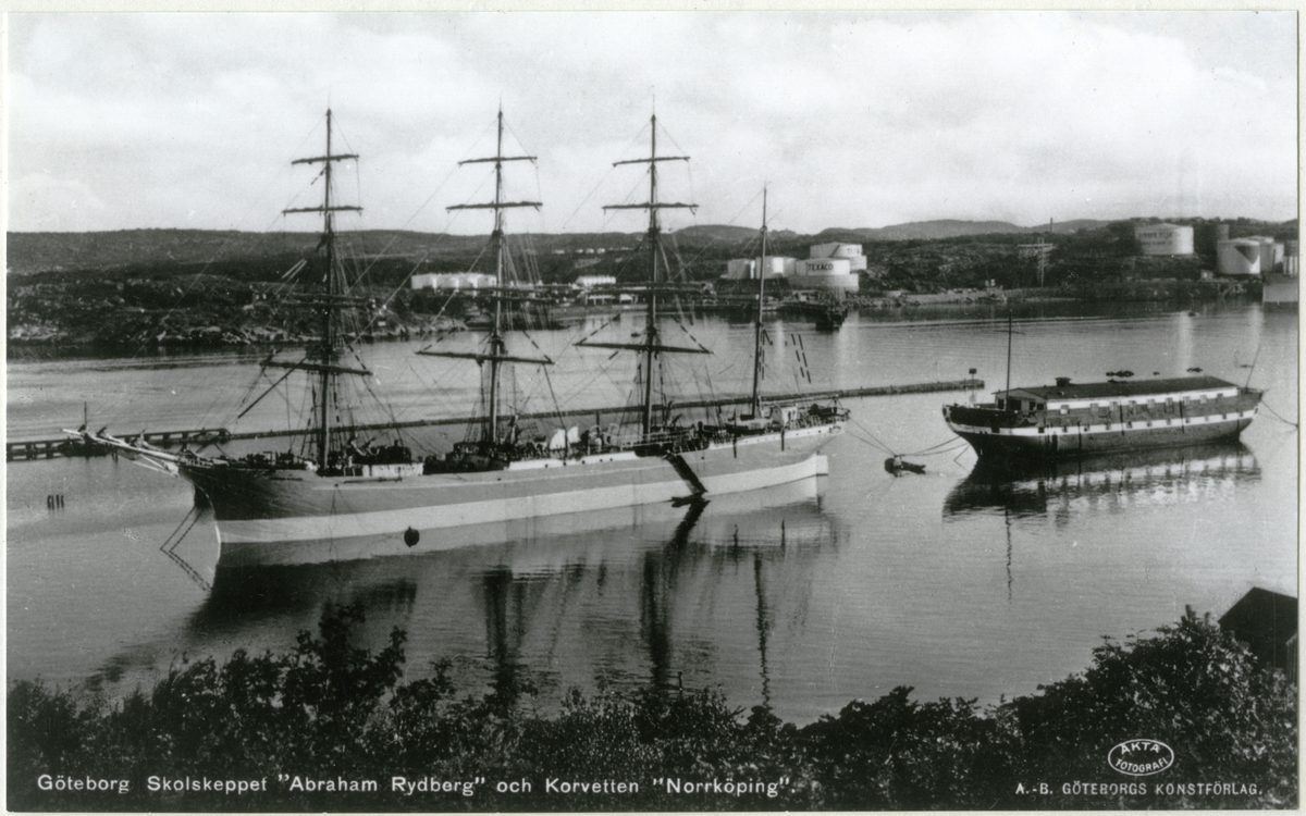 [text i n kant på vykortet:] "Göteborg Skolskeppet 'Abraham Rydberg' och Korvetten 'Norrköping'"