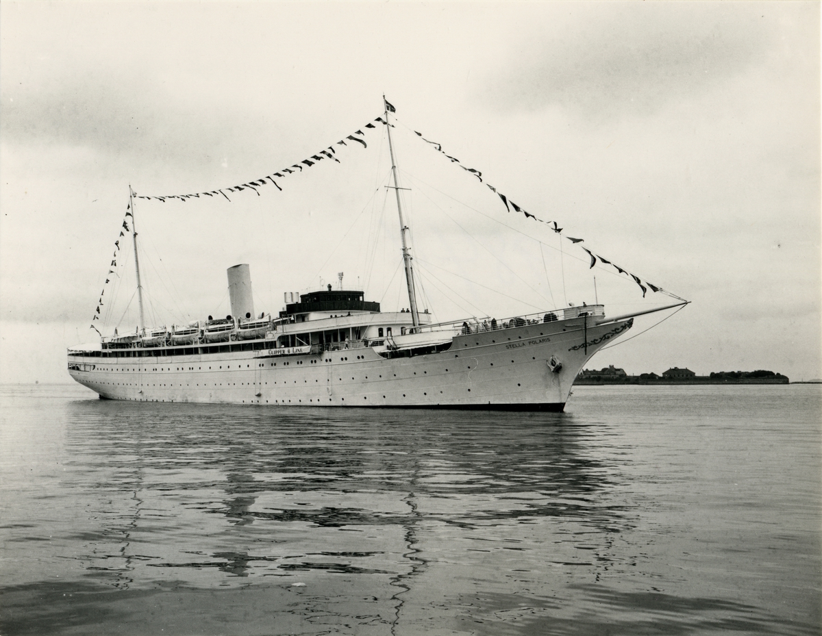 Foto i svartvitt visande passagerarmotorfartyget Stella Polaris i Köpenhamn den 27.8.1954