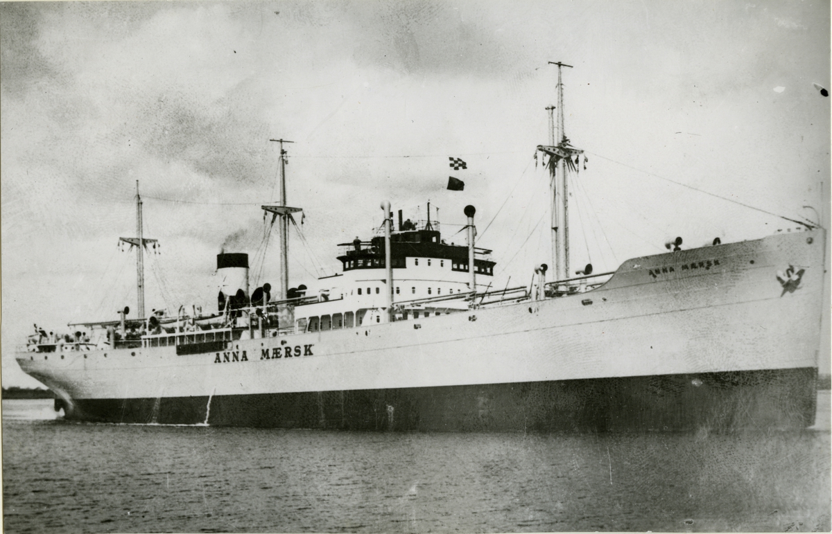 Foto i svartvitt visande passagerarmotorfartyg ANNA MAERSK i Köpenhamn.