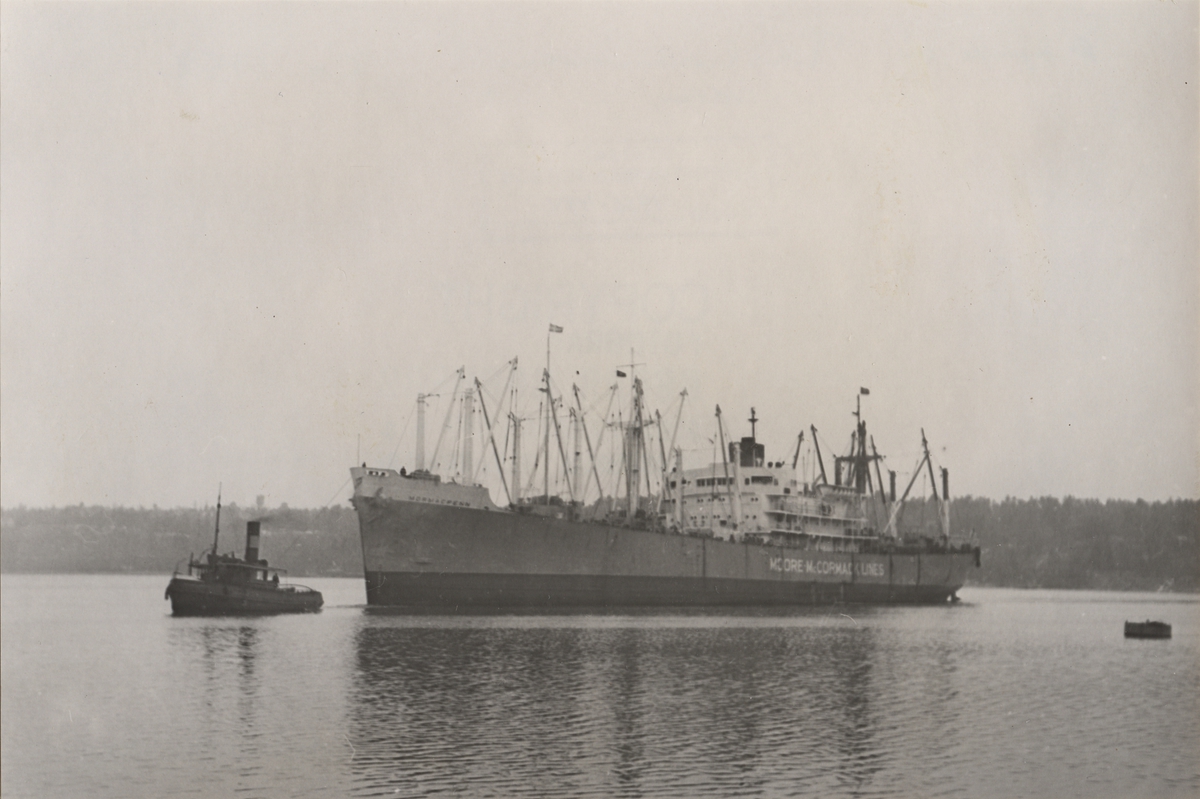Turbinångfartyget MORMACPENN av New York på ingående till Frihamnen, Stockholm, 1952.