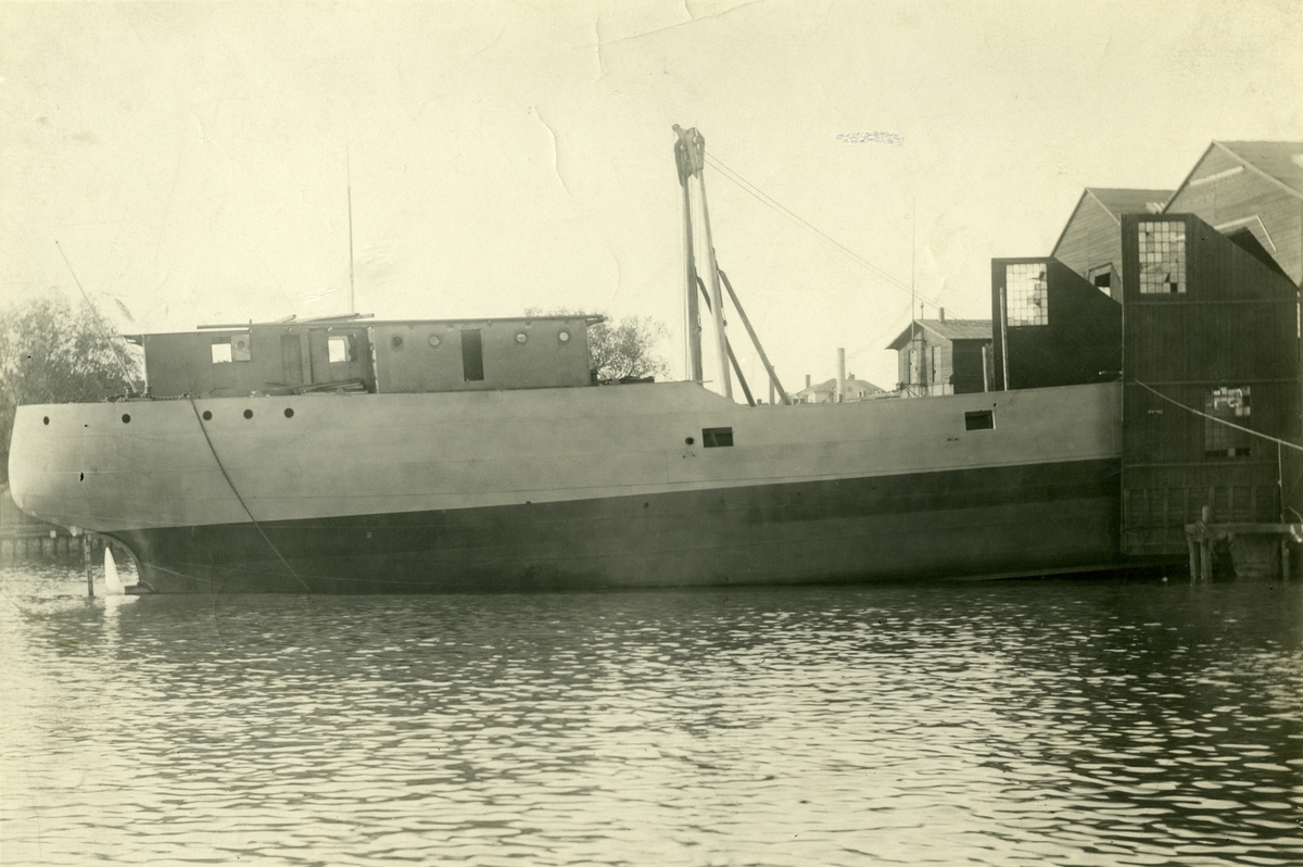 S/S Norrtälje [stavades dock Norrtelje] vid stapellavlöpningen 1920, då fartyget fastnade på bädden.
