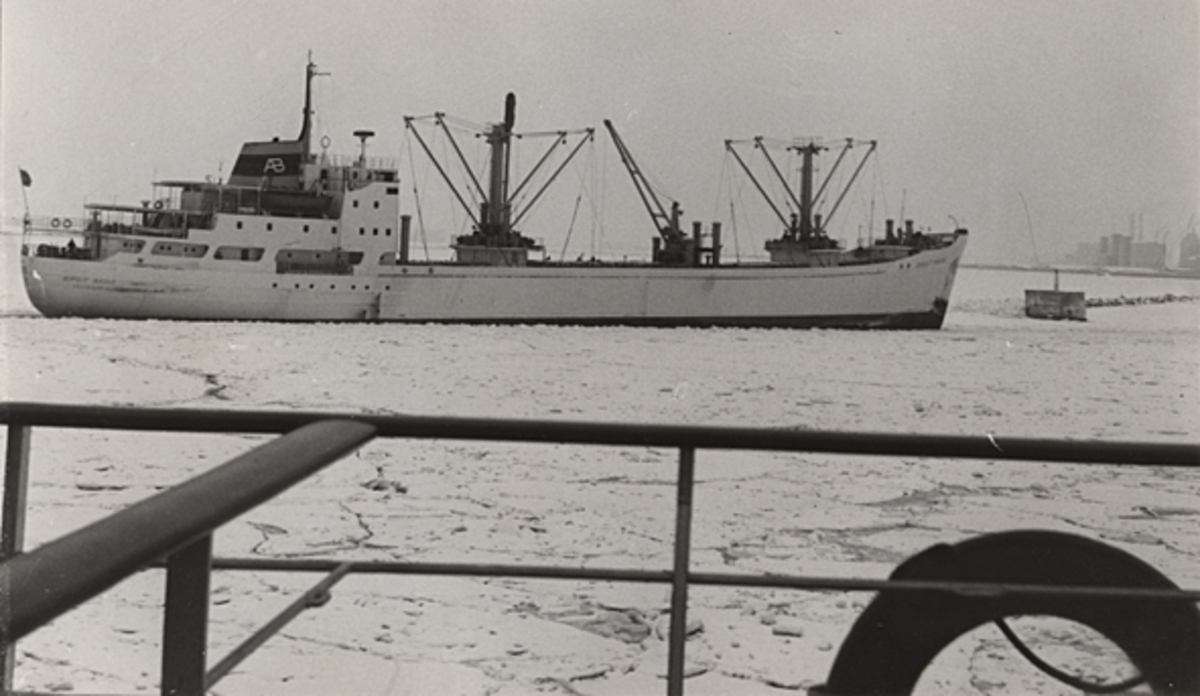 Lastmotorfartyget BIRGIT RAGNE av Västervik 8.8.1965. Bilden tagen utanför Malmö hamn i början av år 1963.